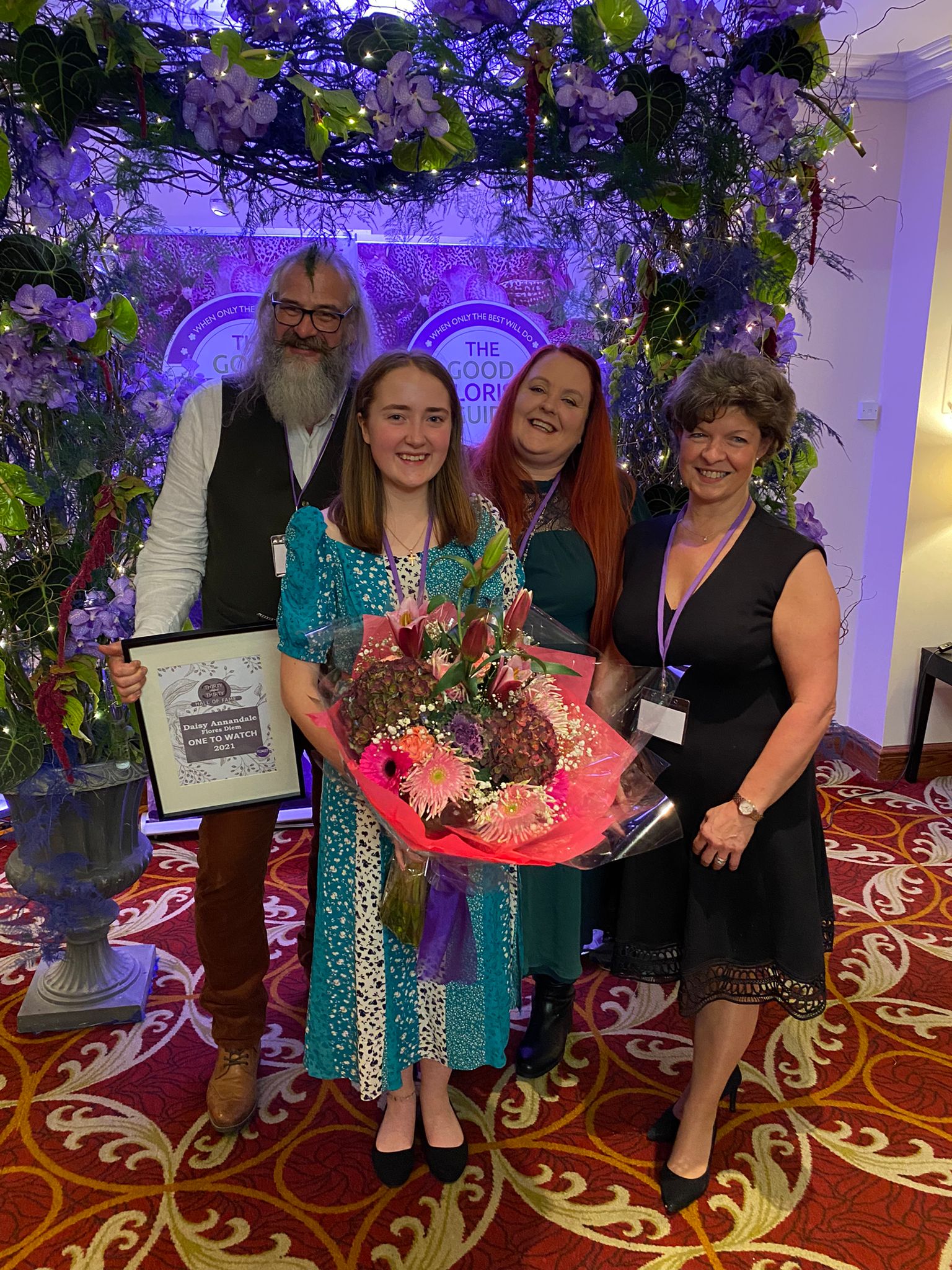 You are here: Home1 / 2 / Talented Daisy recognised as future floristry star3 / Phil Derricutt, Daisy Annandale, Viv Derricutt, Helen Longshaw