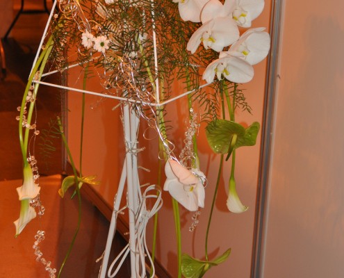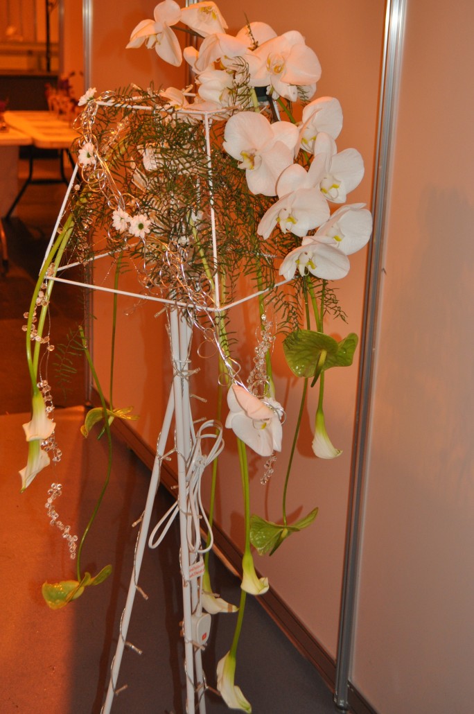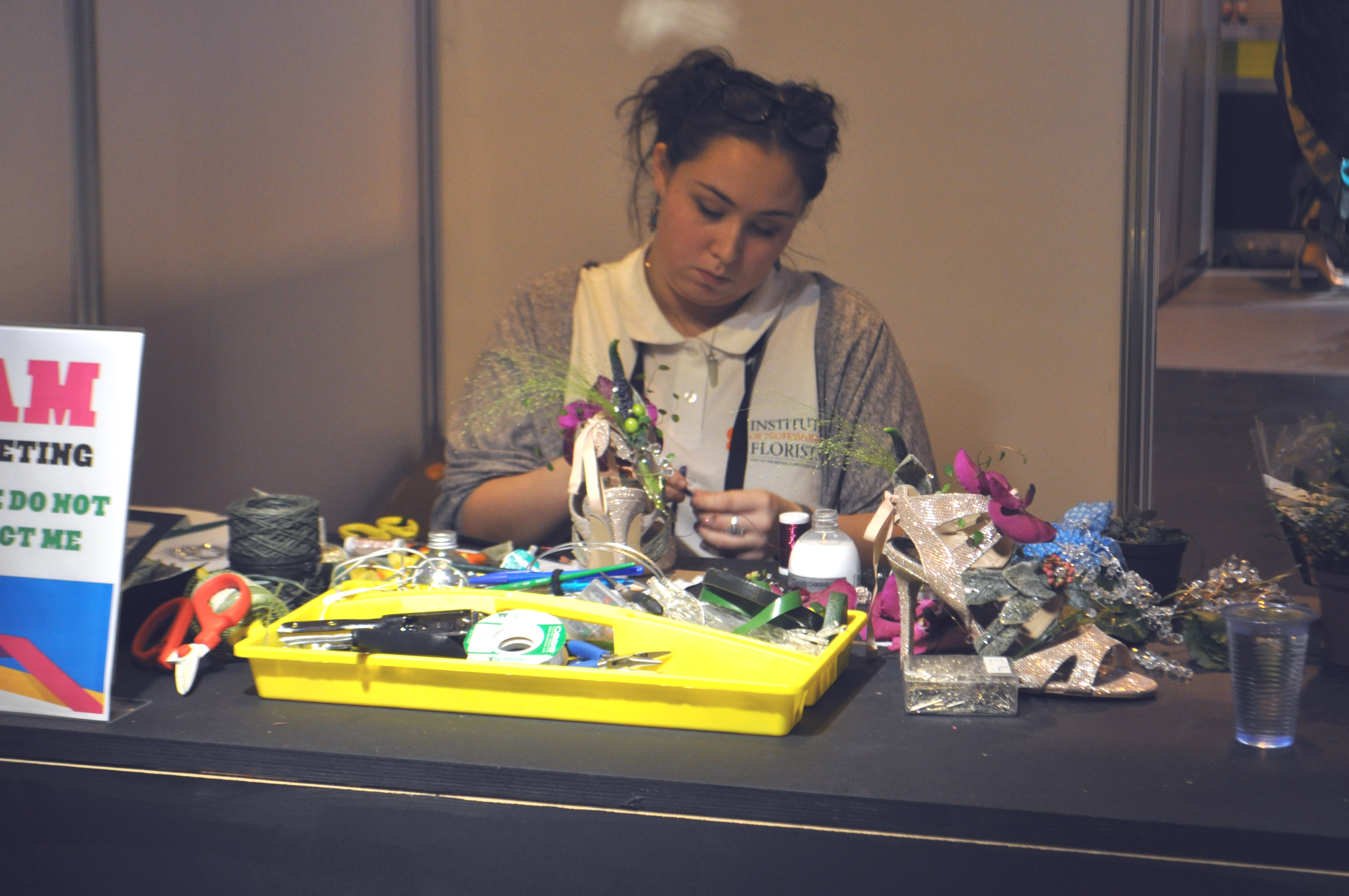 Our florists had to create five designs – a hand tied bouquet, a wreath, a bridal bouquet, a decorated lampshade and a pair of customised high heeled shoes – while Chris built a garden to plan which included hard and soft landscaping.