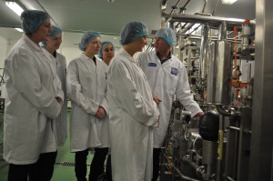 Senior Dairy Technologist Derek Allen demonstrates yoghurt manufacture on Reaseheath’s flexible process plant to Tesco’s technical and development team