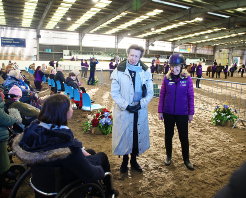 The Princess Royal has actively supported the charity for over 50 years and keeps informed about all aspects of its work. During the visit, The Princess Royal met some of the local group’s coaches and volunteers, supporters and trustees. Her Royal Highness also watched a demonstration by seven riders and ponies, talking to each individually and presenting them with a rosette, and later mingling with other riders and their families.