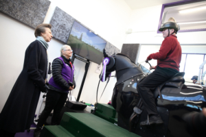 You are here: Home1 / 2 / The Princess Royal opens Riding for the Disabled Centre at Reaseheath College3 / The Princess Royal, coach Mandy Molyneux, riding simulator Tim Quirk