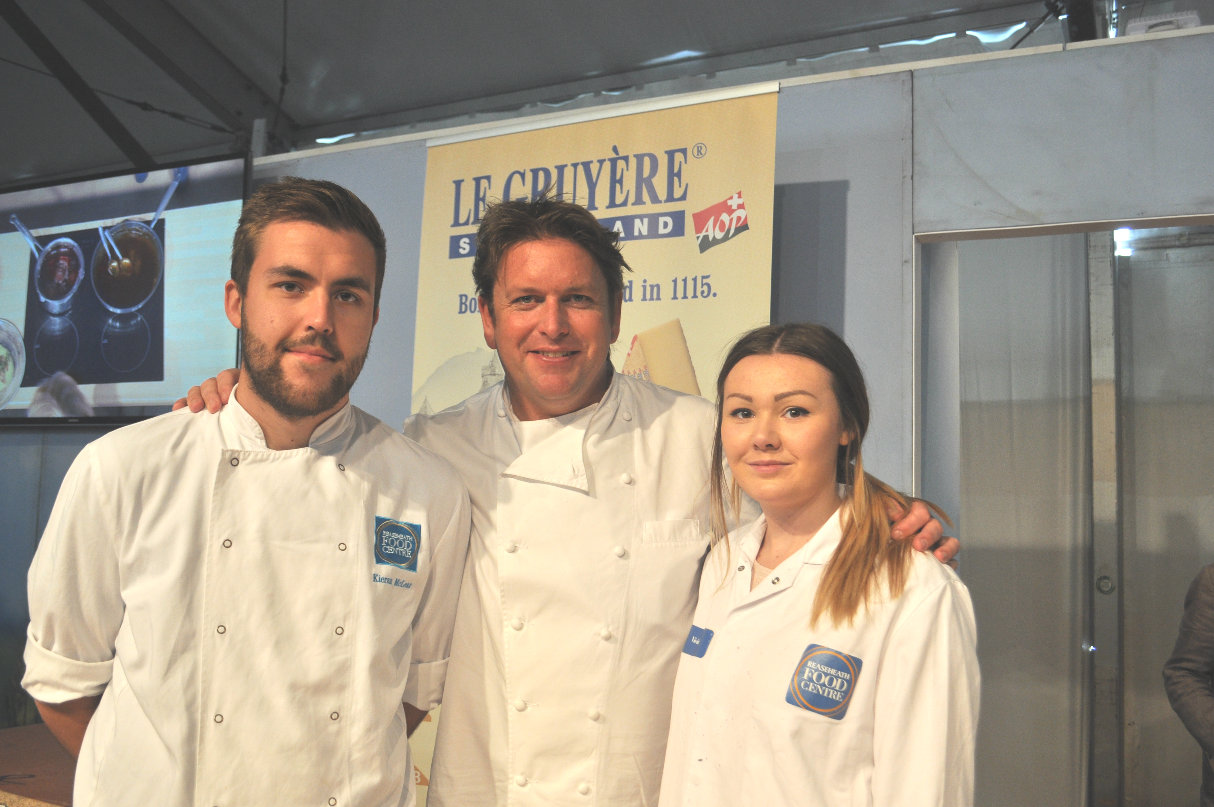 You are here: Home1 / 2 / Triple gold for Reaseheath at Nantwich International Cheese Show3 / James Martin celebrity chef withcommis chefs Elysha Emberson and Kieran...