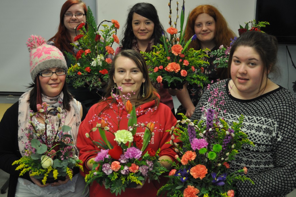 Level 1 Certificate in Floristry students at the Nantwich college enjoyed making heart shaped designs from fresh flowers during a Valentine themed practical lesson on Friday.