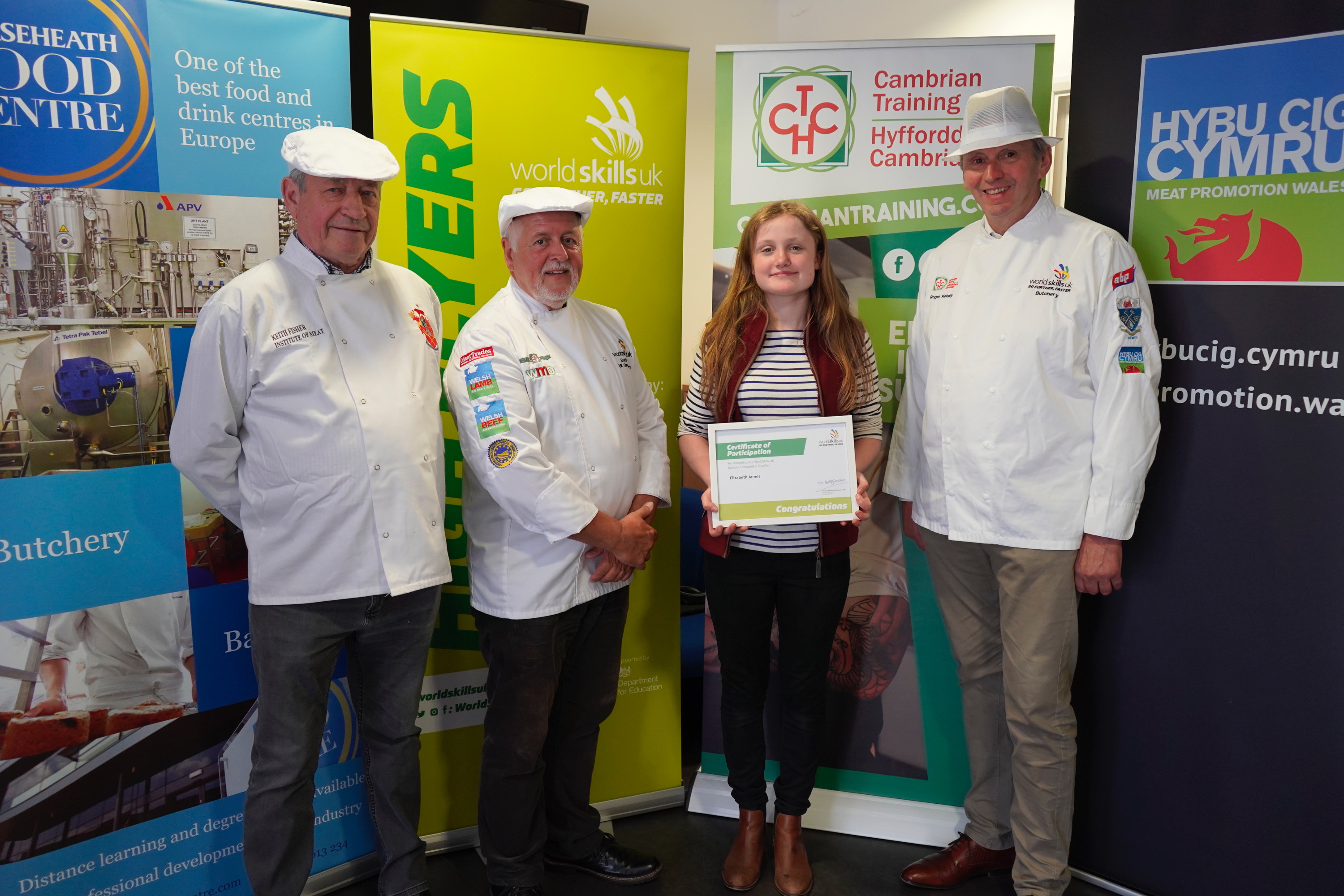 You are here: Home1 / 2 / Young butchers shine in WorldSkills UK qualifier3 / Elizabeth James certificate with judges