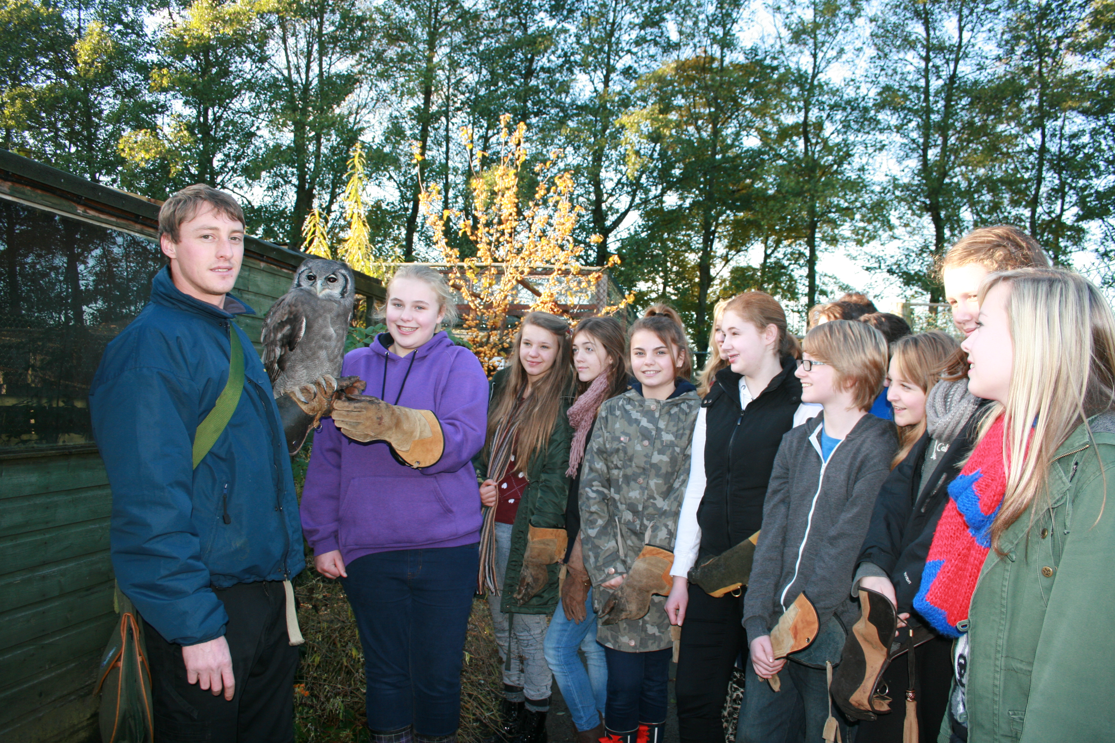 You are here: Home1 / 2 / Zoo trip prize for Bury budding scientists3 / Lucy Tyrer and friends meet Nzito the Milky Eagle owl and keeper Mitch...